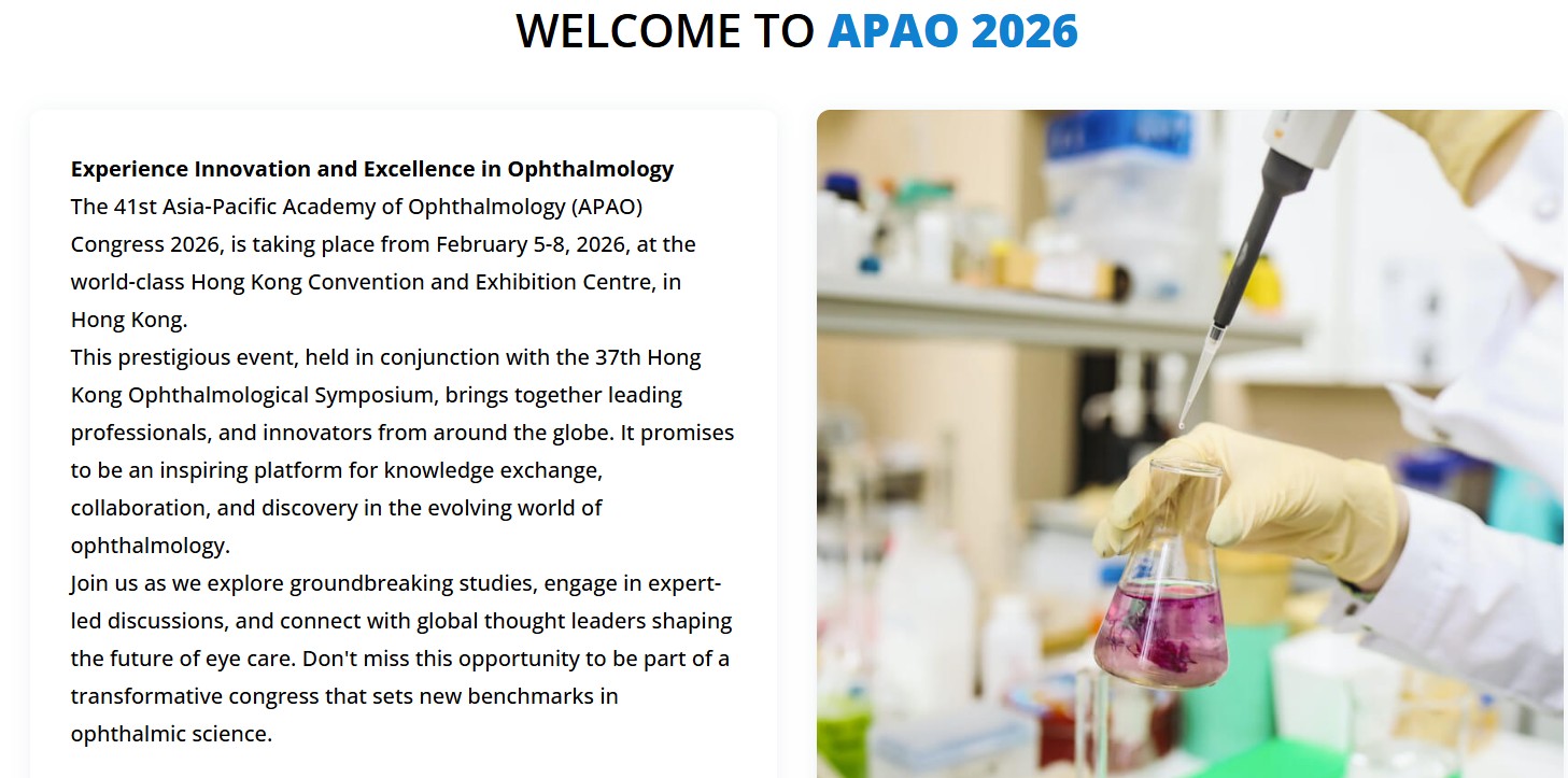 Experience Innovation and Excellence in Ophthalmology The 41st Asia-Pacific Academy of Ophthalmology (APAO) Congress 2026, is taking place from February 5-8, 2026, at the world-class Hong Kong Convention and Exhibition Centre, in Hong Kong. This prestigious event, held in conjunction with the 37th Hong Kong Ophthalmological Symposium, brings together leading professionals, and innovators from around […]